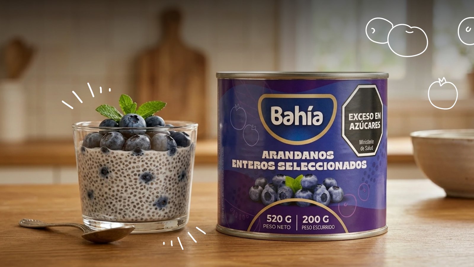 Licuá la leche con las 2 cdas de arándanos y la miel, luego añadí las semillas de chía y mezclá todo muy bien. Vertí la mezcla en un vaso y llevalo a la heladera durante varias horas, a poder ser dejalo toda la noche. Al día siguiente o pasadas unas horas, colocá el yogur encima y terminá decorando con más arándanos Bahía.