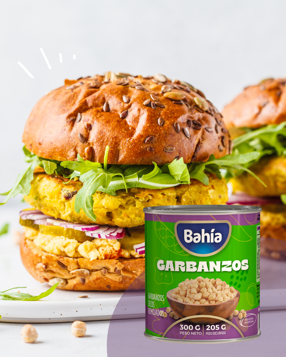 1 lata de Garbanzos Bahía, bien escurridos ½ cebolla chica, picada fina 1 zanahoria mediana, rallada 1 diente de ajo, picado o rallado 2 cucharadas de pan rallado 1 cucharada de harina de garbanzo o común 1 cucharadita de comino en polvo 1 cucharadita de pimentón dulce Sal y pimienta negra a gusto 1 cucharada de aceite de oliva (más extra para cocinar) Opcional: perejil o cilantro fresco picado