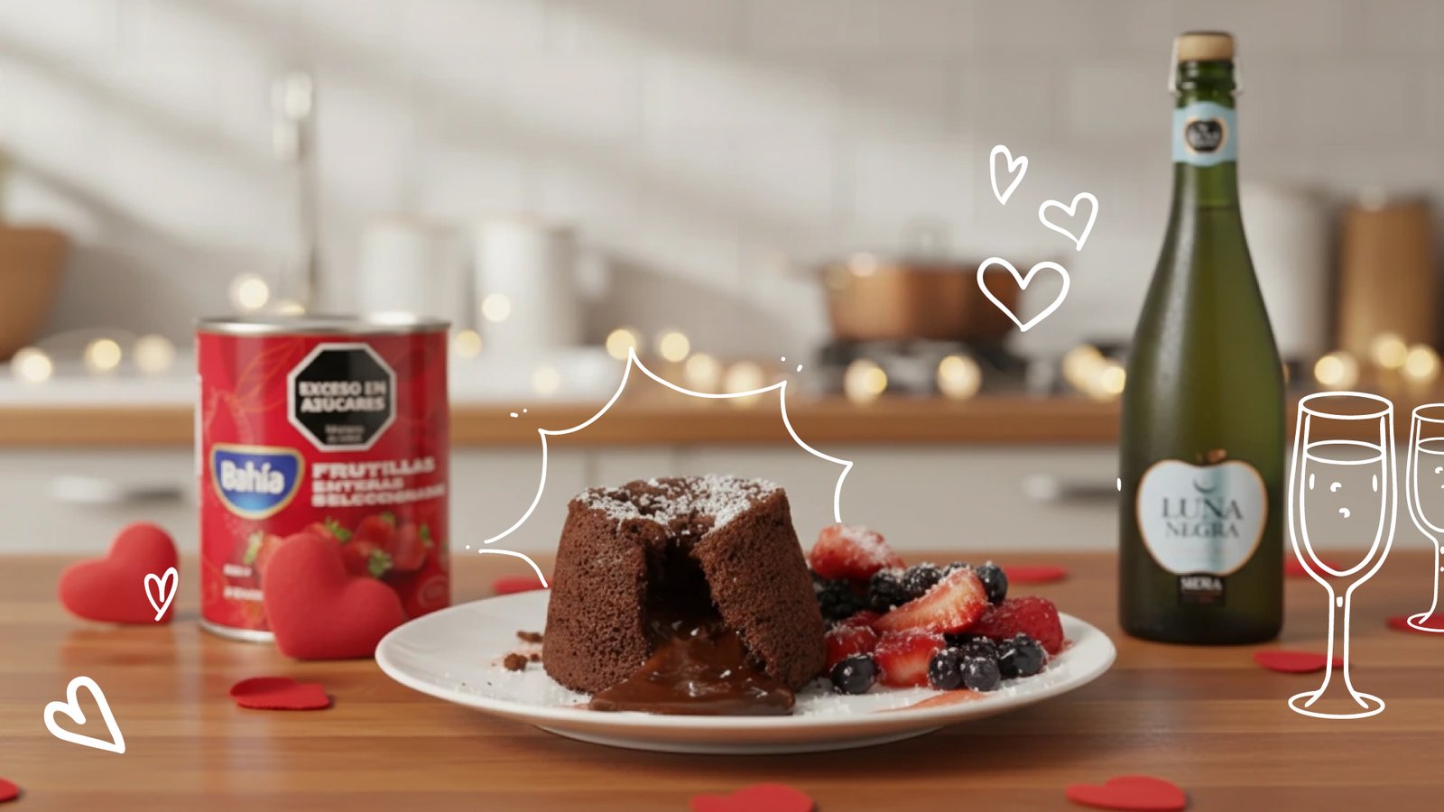 Cuando ya el volcán haya crecido y tenga grietas en la superficie, será indicativo de que está listo. Retirá y decorá con frutillas enteras Bahía y acompañalo con una copa de sidra LUNA NEGRA.